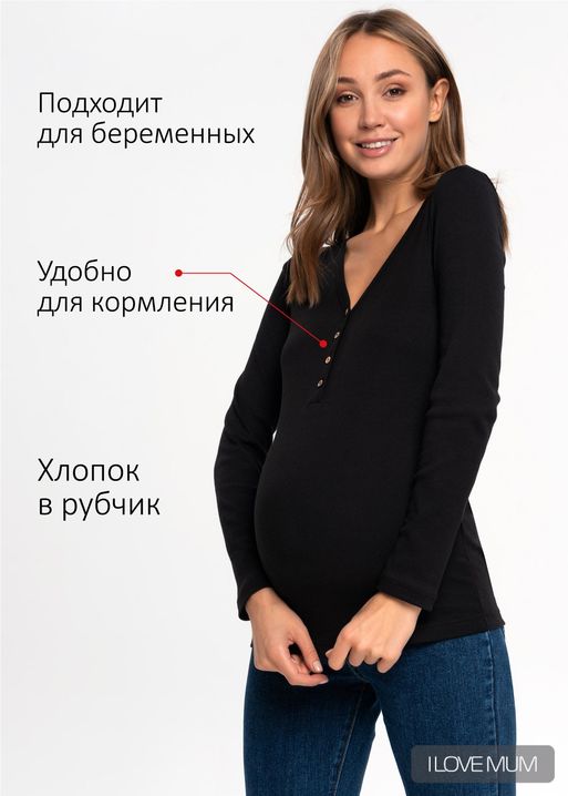 Лонгслив "Спарк" для беременных и кормящих; черный